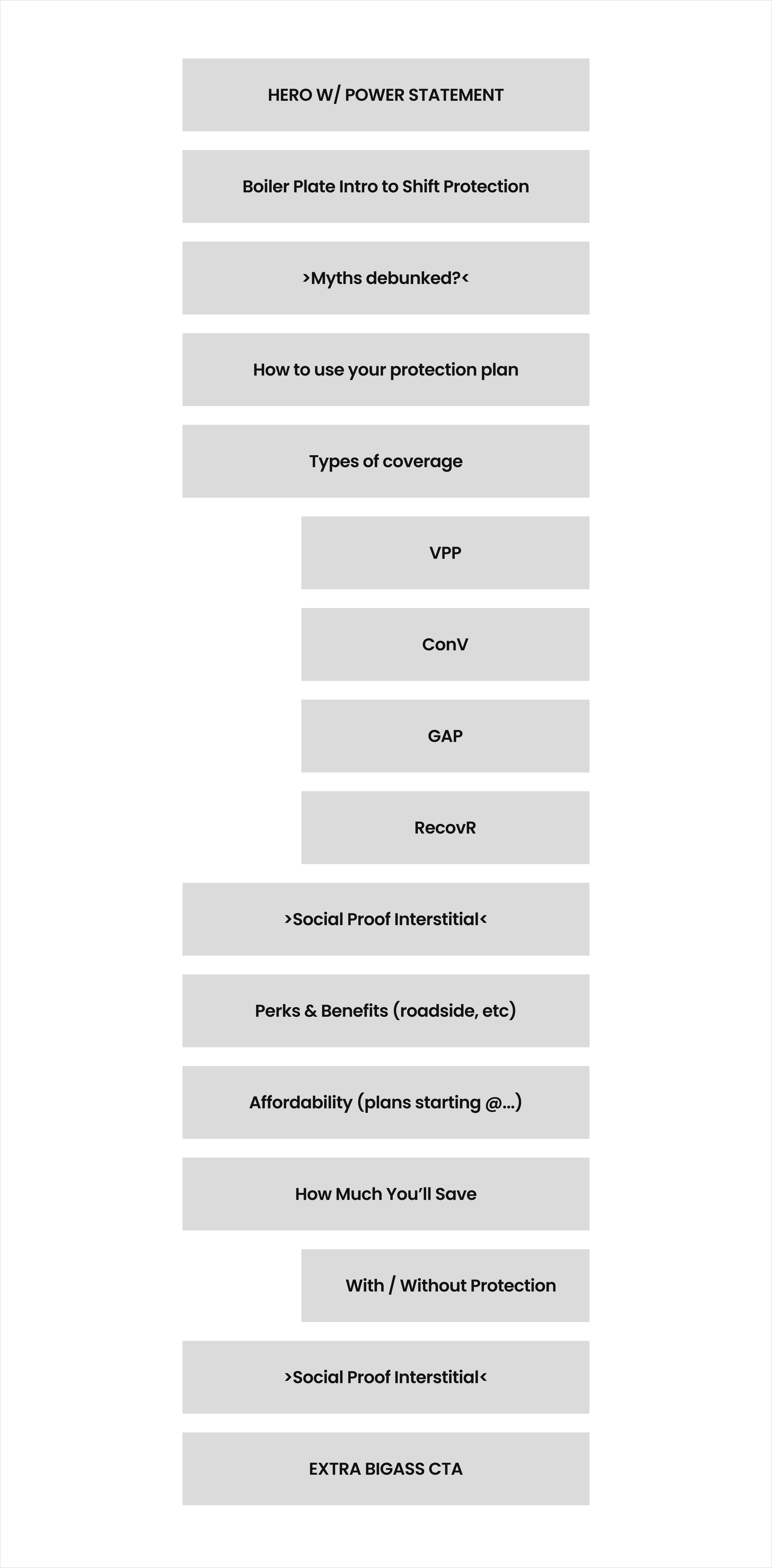 Shift’s content strategy was fractured across the shopping and purchase funnel. This left sales advisors with a tiny window to nurture an even tinier handful of confused and frustrated customers. That’s because further upstream, the shopping experience gave hardly any information of value.